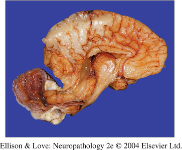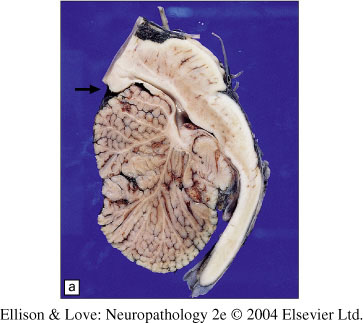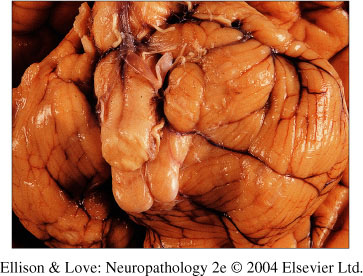 Herniated cerebellar folia showing sclerosis