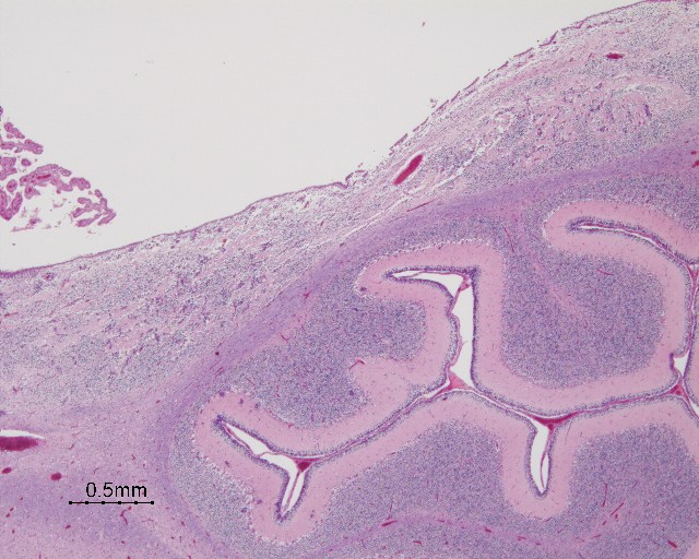 - apparent fusion of the cerebellar hemispheres