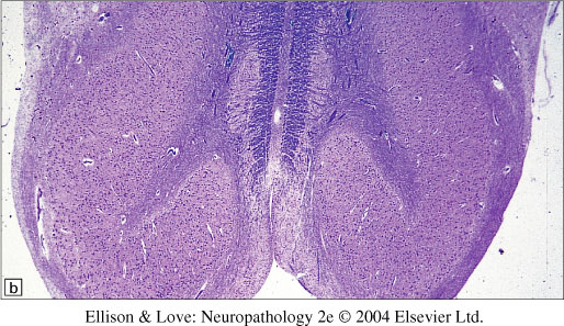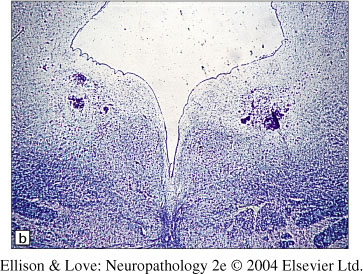 - believed that the midline and paramedian zones of the developing brainstem are poorly vascularized and more vulnerable to injury