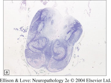 - macroscopically, can only be detected by careful observation in mature brains (hard to see in immature brains