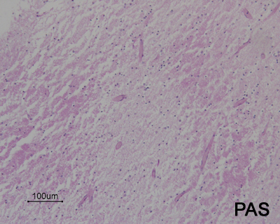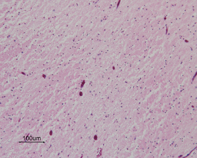 - diffuse cerebral white matter gliosis - no accompanying white matter necrosis
