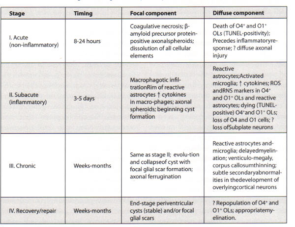 - current research underway to understand the sensitivity of premyelinating oligodendrocytes to hypoxia-ischemia and inflammation
