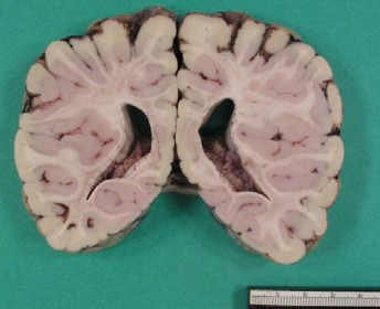 - in cases of severe cerebral edema, there can also be upper cervical cord swelling and hemorrhagic necrosis