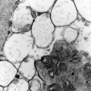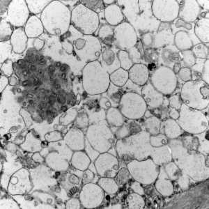- lysosomal vacuoles with ill-defined contents